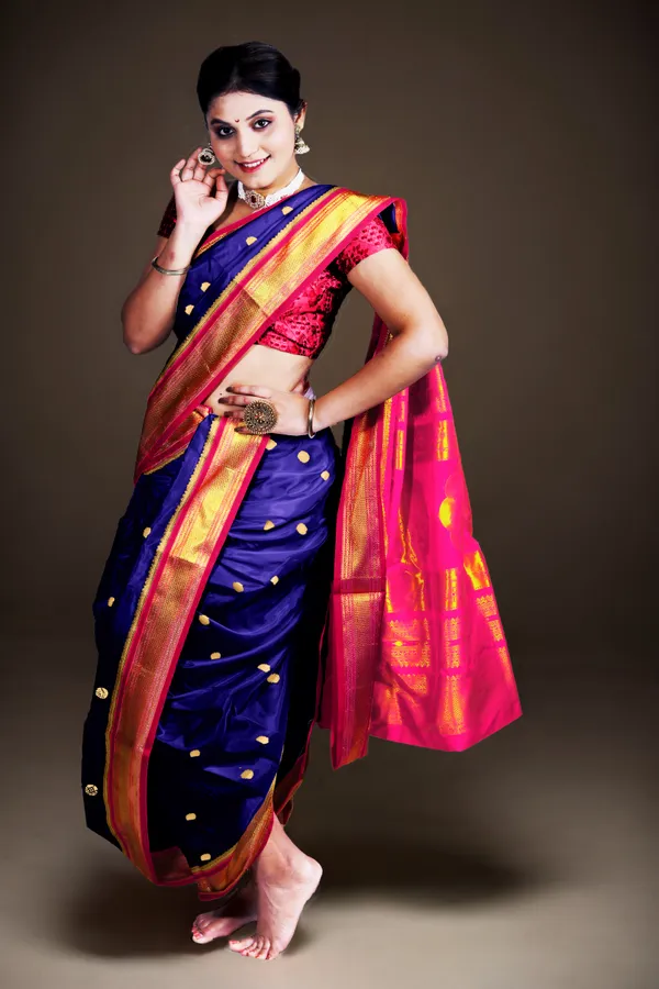 Blue & Pink Tana Silk Zari Work Semi Paithani Saree With Blouse Piece For W..More